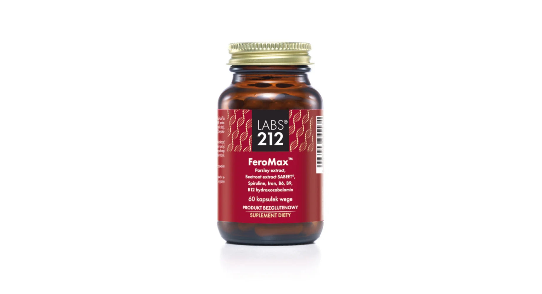 Suplement diety FeroMax™ to preparat w postaci kapsułki zawierający: ekstrakt z liścia pietruszki (Petroselini crispum), ekstrakt z korzenia buraka zwyczajnego SABEET ® (Beta vulgaris), spirulinę z alg (Arthospira Platensis), żelazo w formie diglicynianu żelaza (II), witaminę B6 w formie P-5-P (pirydoksyny-5-fosforan), witaminę B9 w aktywnej metabolicznie formie kwasu foliowego – soli glukozaminowej (6S)-5-metylotetrahydrofolianu, witaminę B12 w formie hydroksykobalaminy.