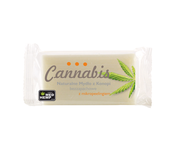 Naturalne, bezwonne mydło z olejem konopnym i mikropeelingiem.