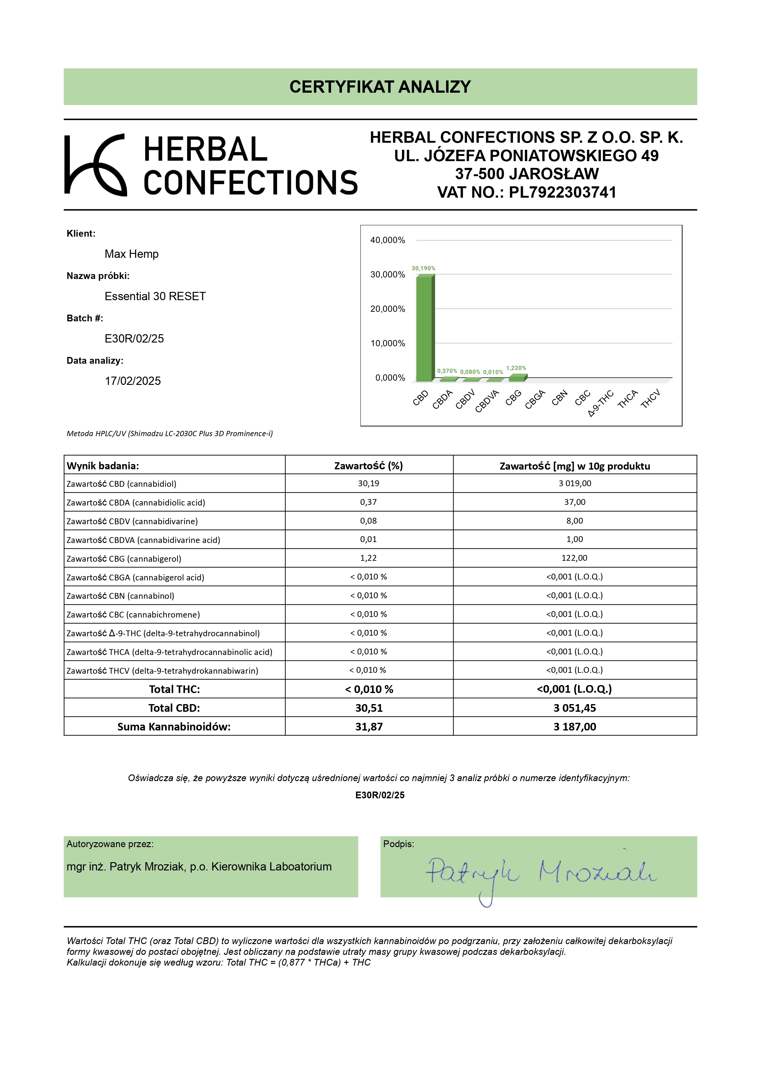 - CBD: 30,20%