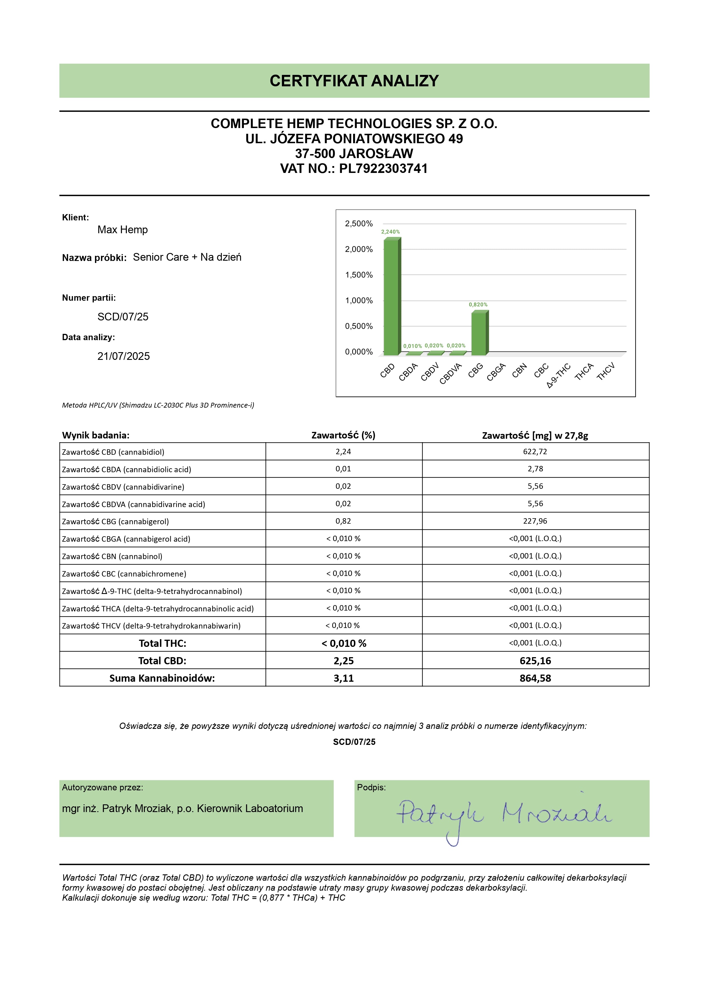 Czy Max Hemp® SeniorCare+ Na dzień jest bezpieczny?